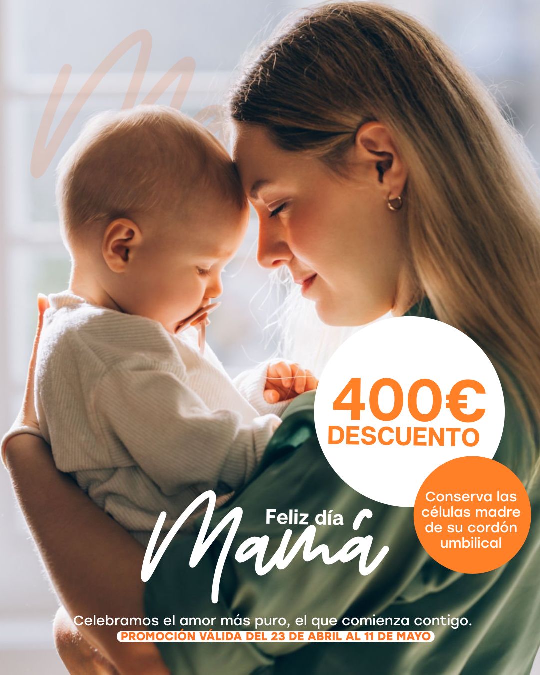 Sólo hasta el 11 de mayo, aprovecha nuestra promoción especial en la conservación de células madre del cordón umbilical con un descuento exclusivo de 400€.
